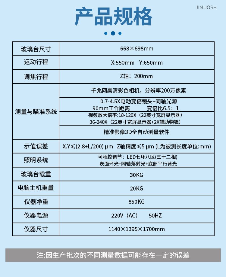 龙门2.5次元影像仪G650参数如下: